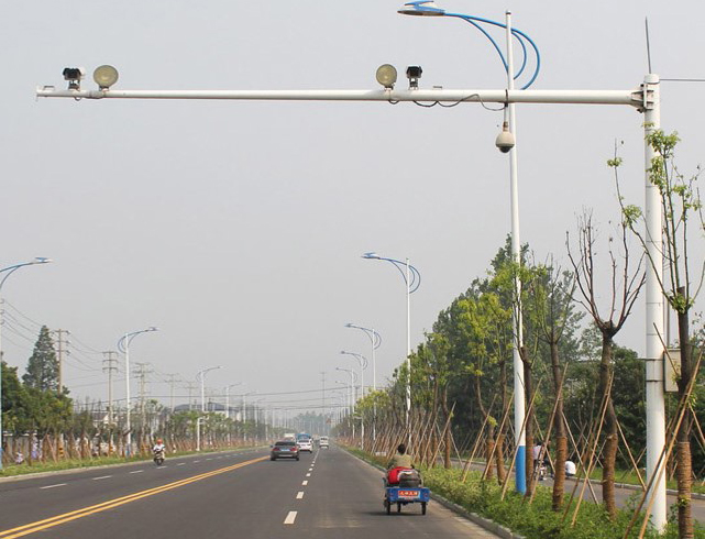 立桿要求攝像機離地面高度一般不低于5米,挑臂長度3~5米,立桿下端管徑應(yīng)在220 mm±10mm、上端管徑應(yīng)在120 mm±5mm,管壁厚度應(yīng)≥6mm,表面防腐、抗臺風(fēng)。立桿基礎(chǔ)深度不低于1.5米,基礎(chǔ)直徑大于1米,采用混凝土灌筑,以確保立桿的牢固度。